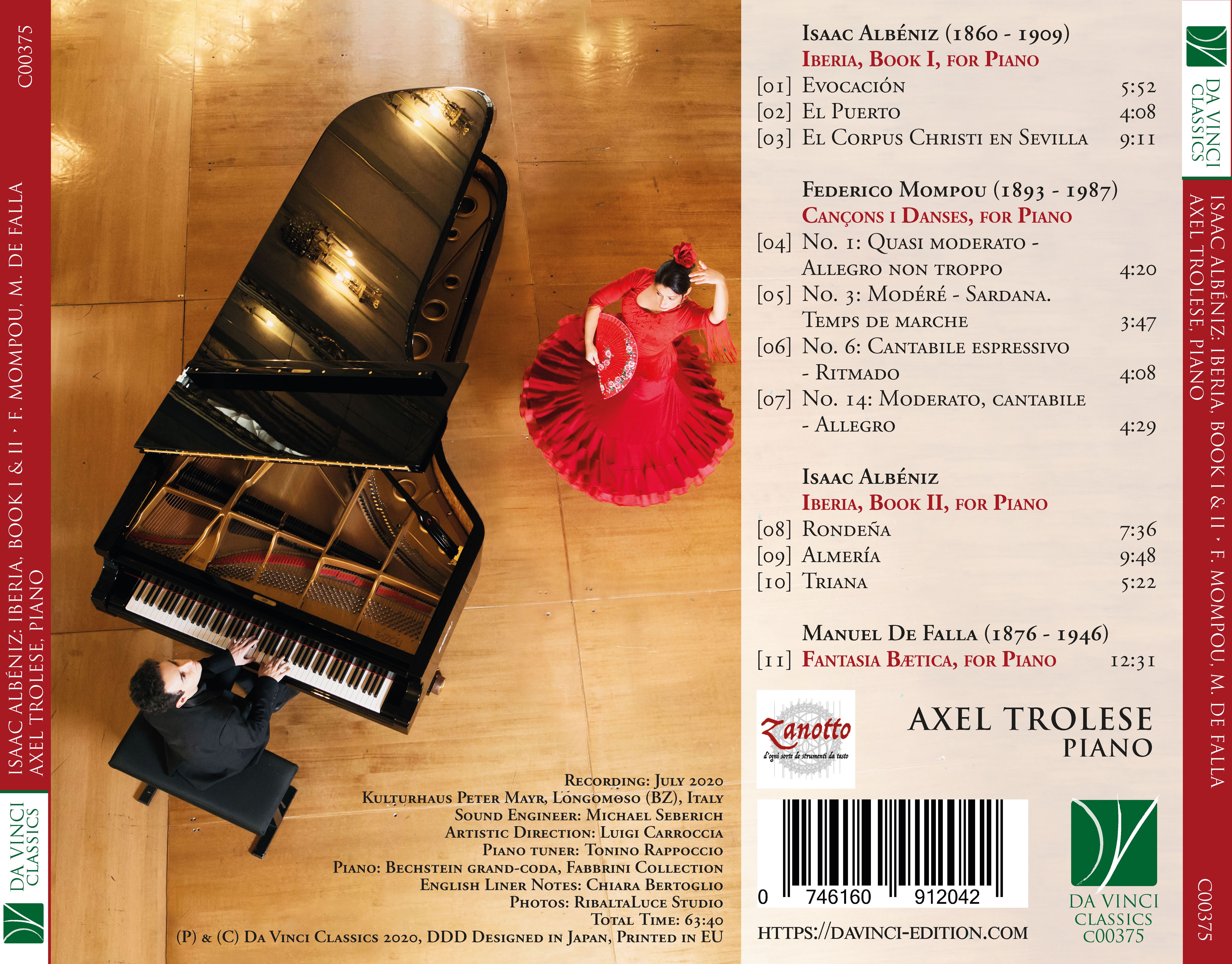 Together, these works by Albeniz, De Falla and Mompou constitute a powerful fresco, suggesting the moods, influences, styles and impressions of a unique land, with a unique musical story and heritage, and with a unique personality which constantly fascinates and charms all those who encounter its music.