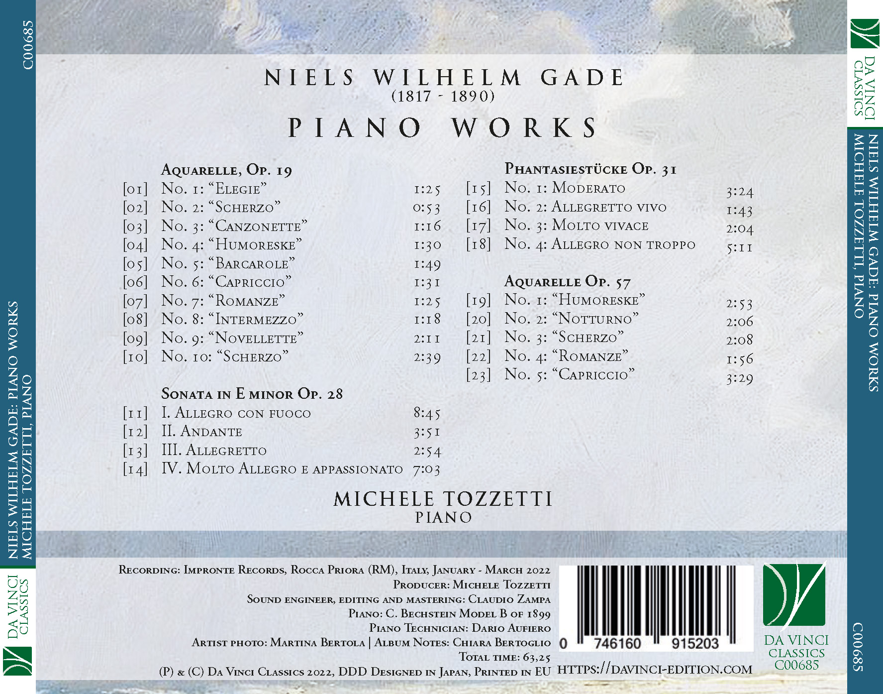 Indeed, the genre of the short and not-excessively-demanding piano piece, as found in Schumann’s Album and in others among his piano collections, was one in which Gade found a valuable outlet for his creativity, as is testified by some of the works collected within this Da Vinci Classics album.